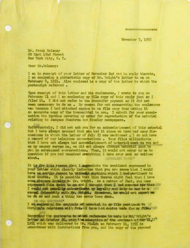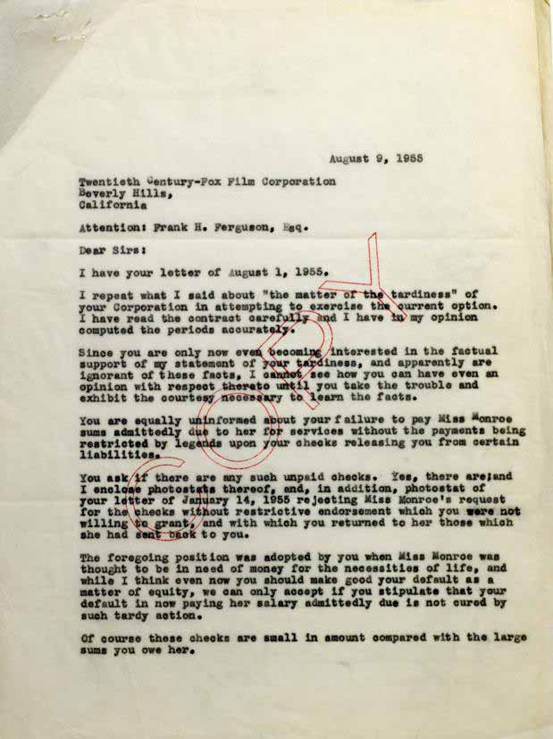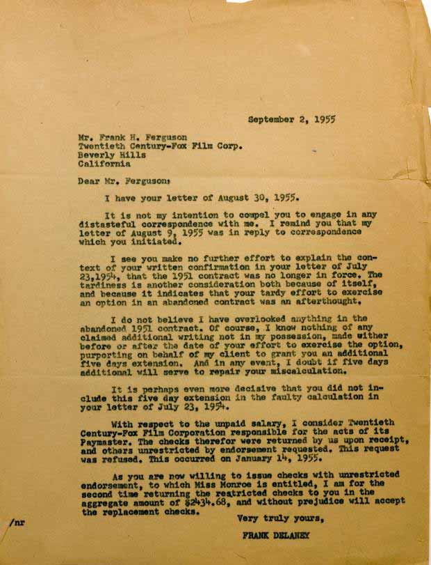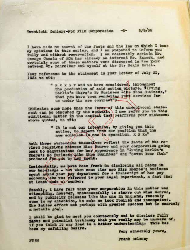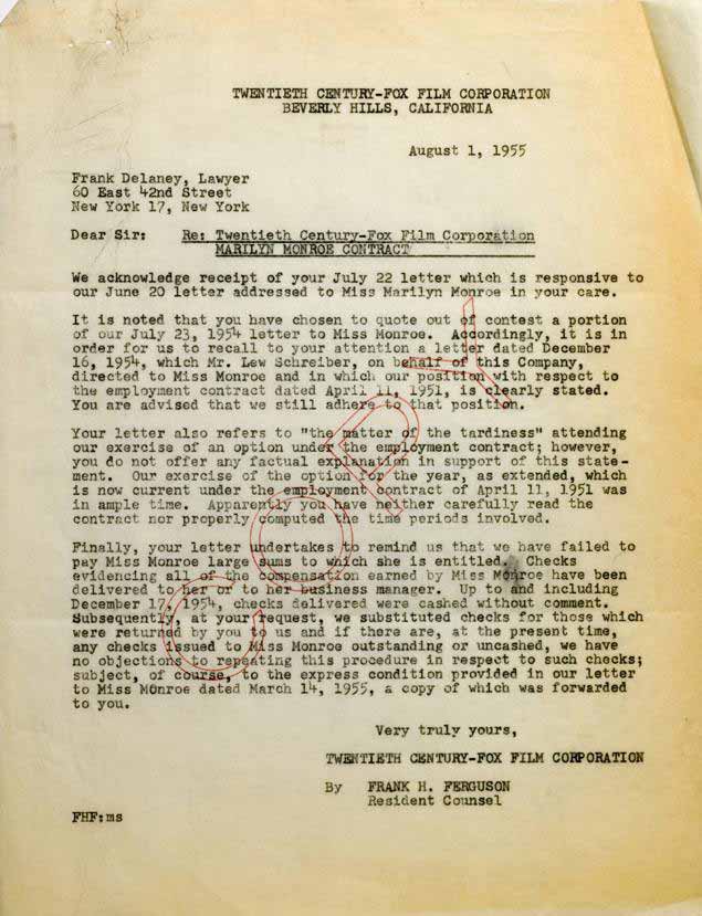 Pendant toute l'année il fut en relation avec la Fox pour renégocier le contrat de Marilyn.