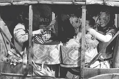 Marilyn Monroe fait partie d'un groupe bigarré de passagers effectuant ce voyage mouvementé; elle incarne Clara, membre d'une troupe de music-hall engagée pour se produire à Tomahawk.