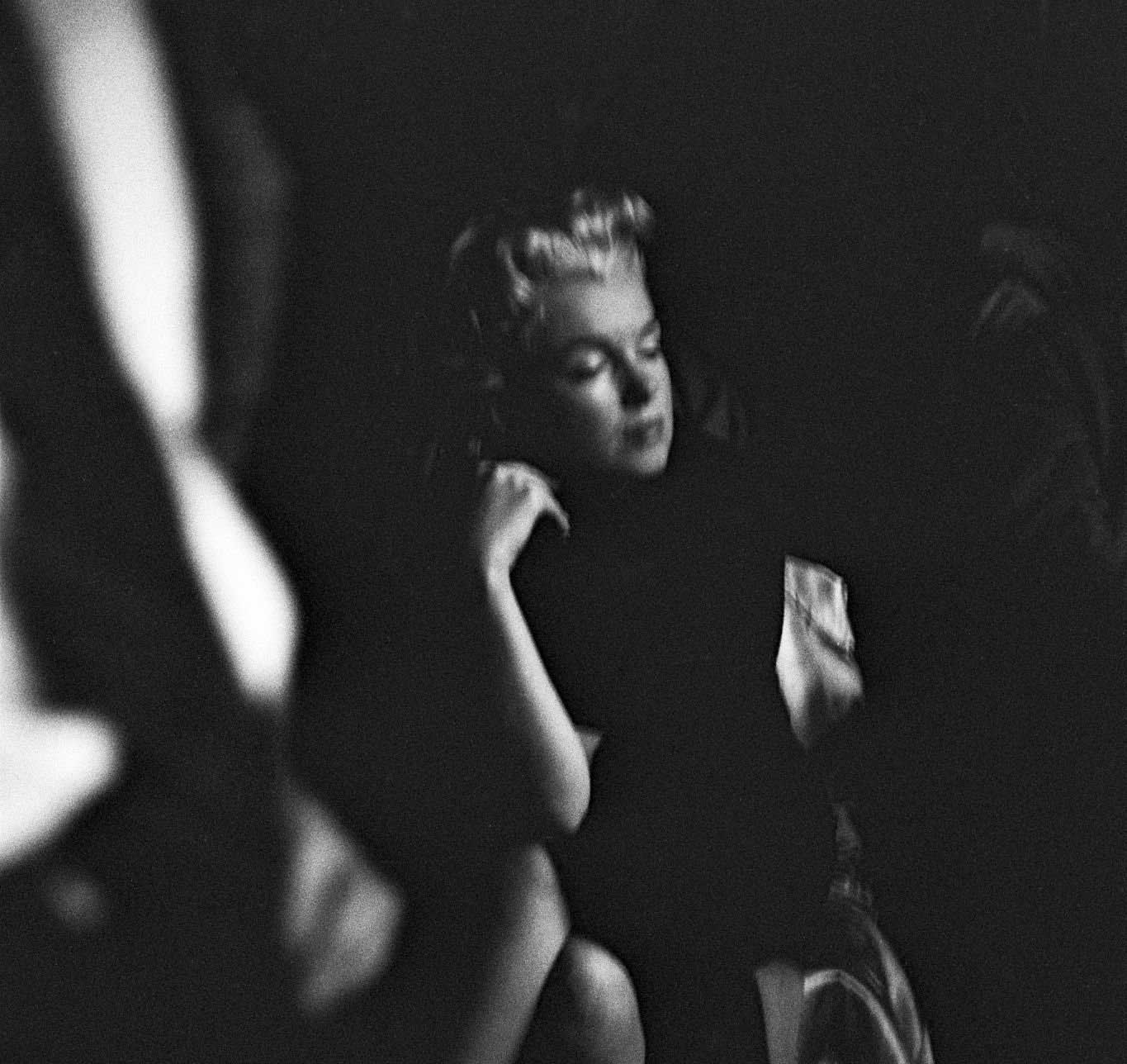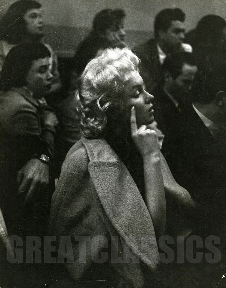 Link with MarilynWhen she attended the sessions instead of the private lessons that Lee gave in his own apartment, she discreetly sat in the back of the room, and sometimes took some notes. She wore a simple blouse, a pants, a scarf covering her hair, and didn't have any make-up.