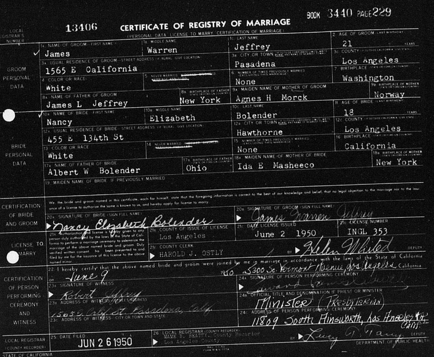 On October 23, 1976 he married Jean Adair Hunt, in Nevada.