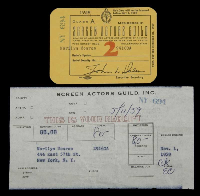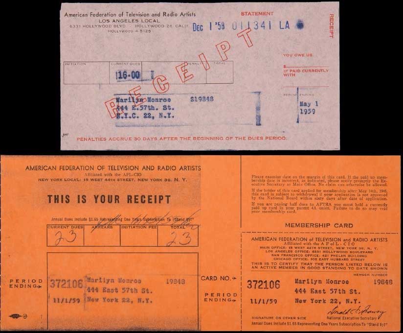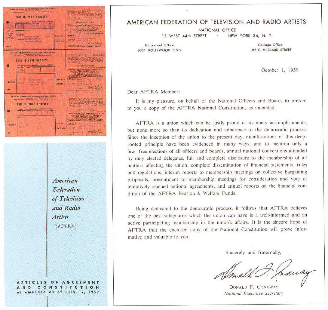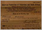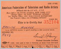 Card of membership of the American Federation of Television and Radio Artists, in 1959