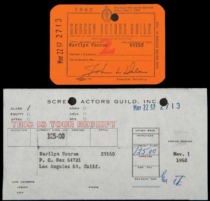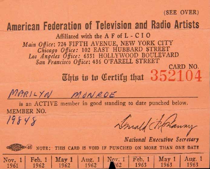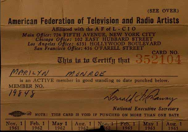 Card of membership of the American Federation of Television and Radio Artists, in 1962