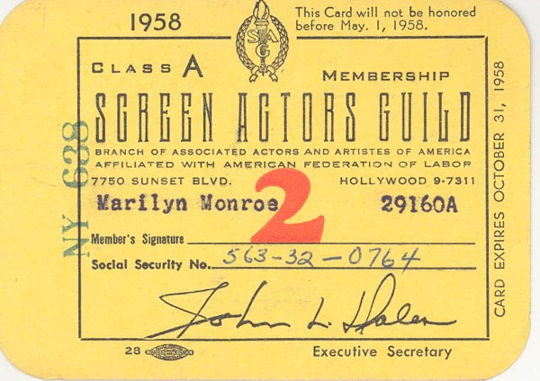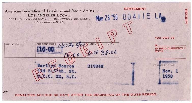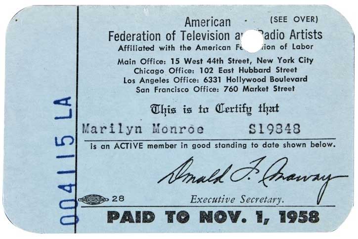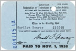 Card of membership of the American Federation of Television and Radio Artists, in 1958