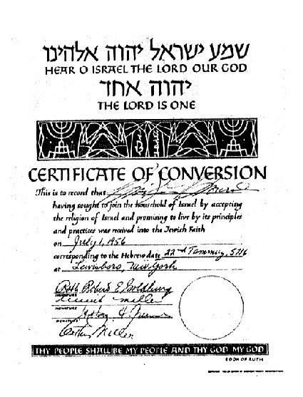 Certificate of conversion to Judaism, dated July 1, 1956 ,,