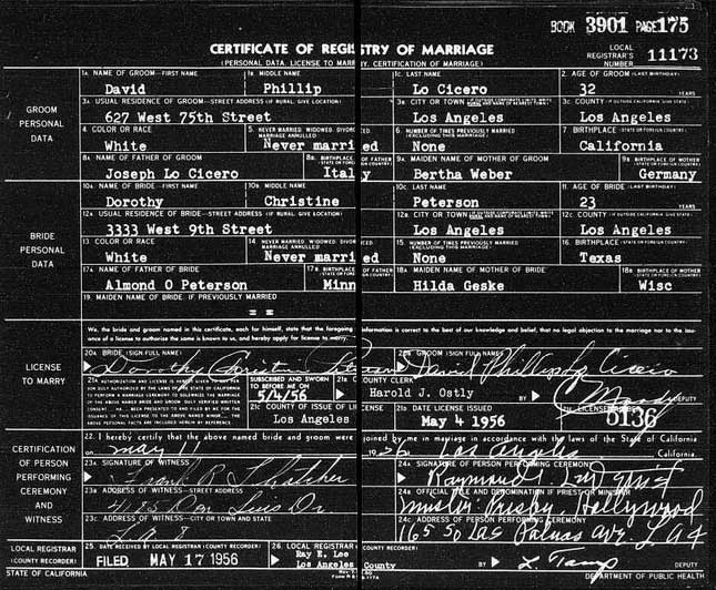 Le 11 mai 1956 il épousa Dorothy Christine Peterson (6 novembre 1932-10 juillet 2016) à Los Angeles