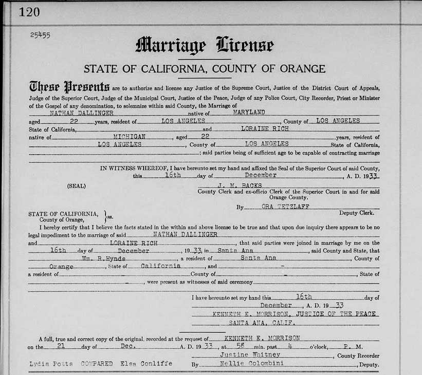 On December 16, 1933 he married Loraine Rich (born in 1911, Michigan)(-