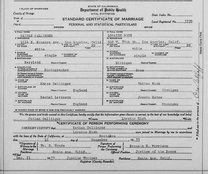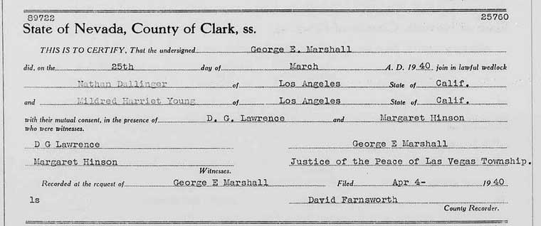 On March 25, 1940 he married Mildred Harriet Young (born in 1920, New York) in Las Vegas