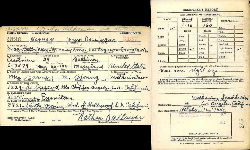 Registration card October 16, 1940