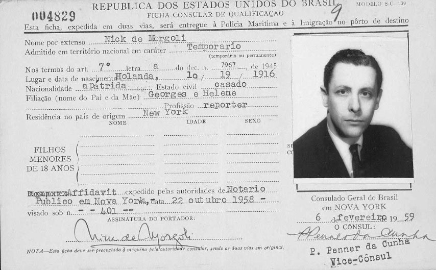 Visa pour le Brésil 6 février 1959.