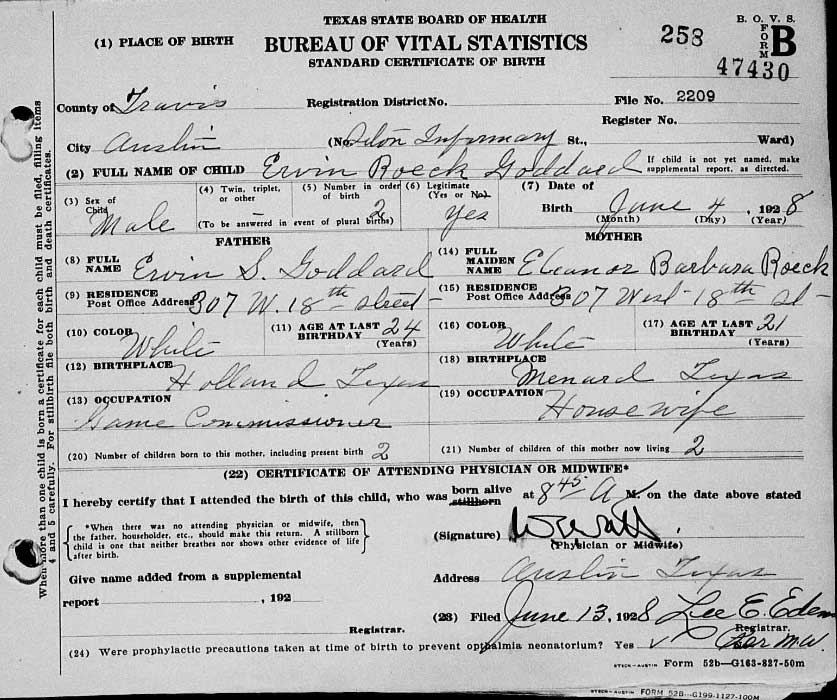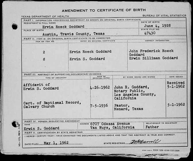 John Frederick (born Ervin Roeck Goddard) (June 4, 1928, Austin, Texas - January 10,