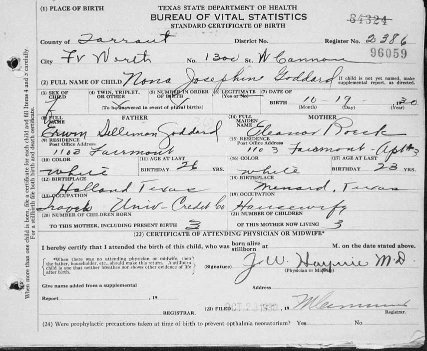 * 1930 : 1103 Fairmont, Apartment n° 3, Fort Worth, Texas