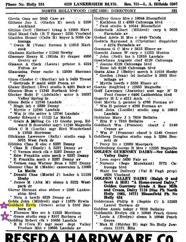 * 1936-1937 : 3107 Barbara Court, North Hollywood