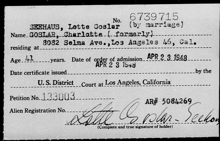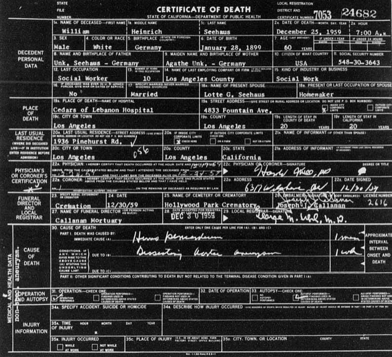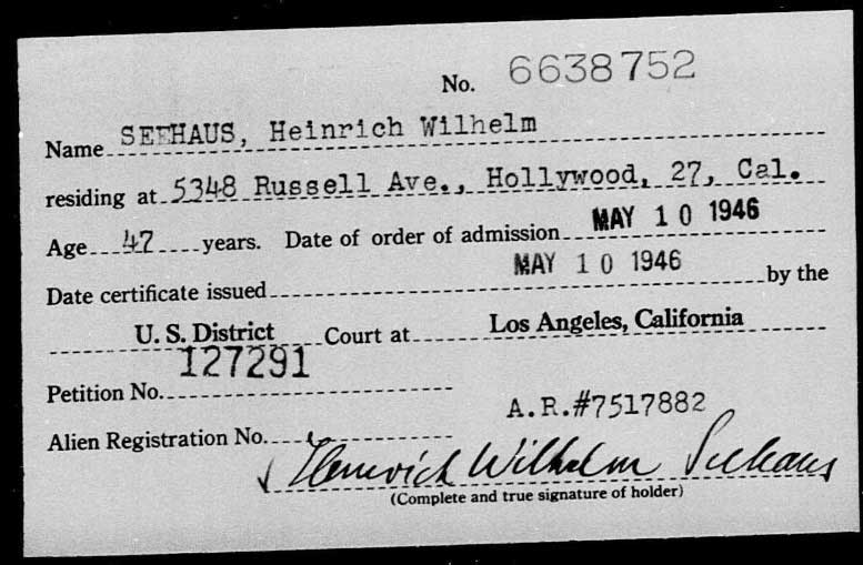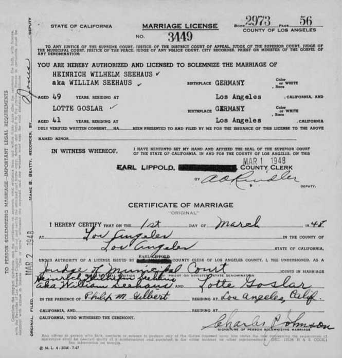 On March 1st, 1948 she married William Seehaus born Heinrich Wilhelm Seehaus ()