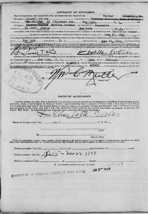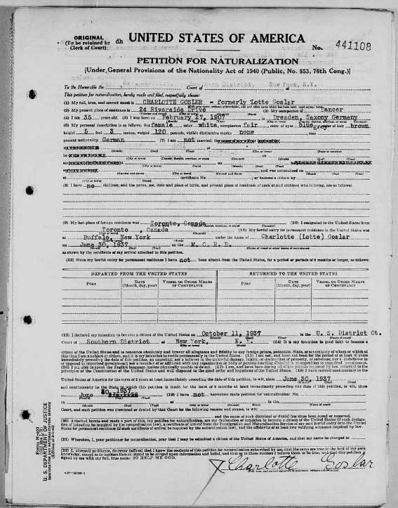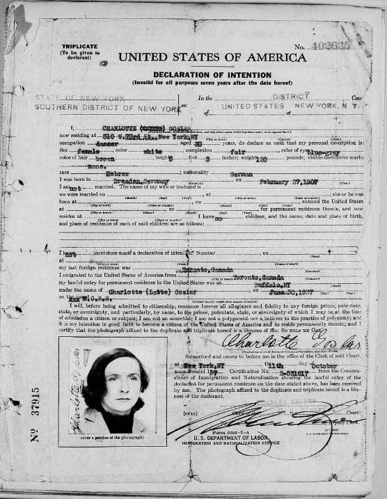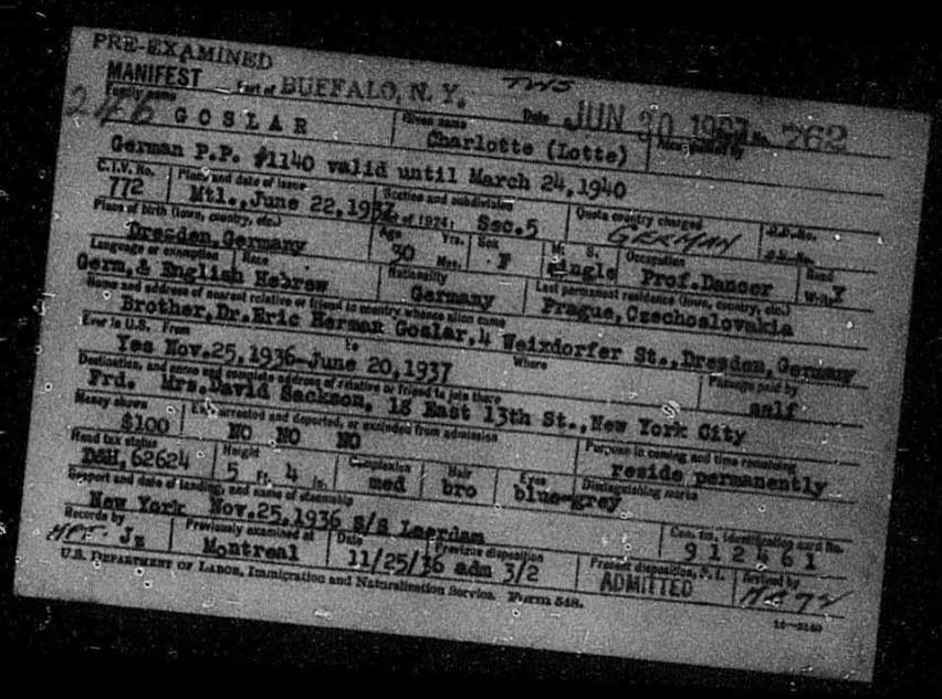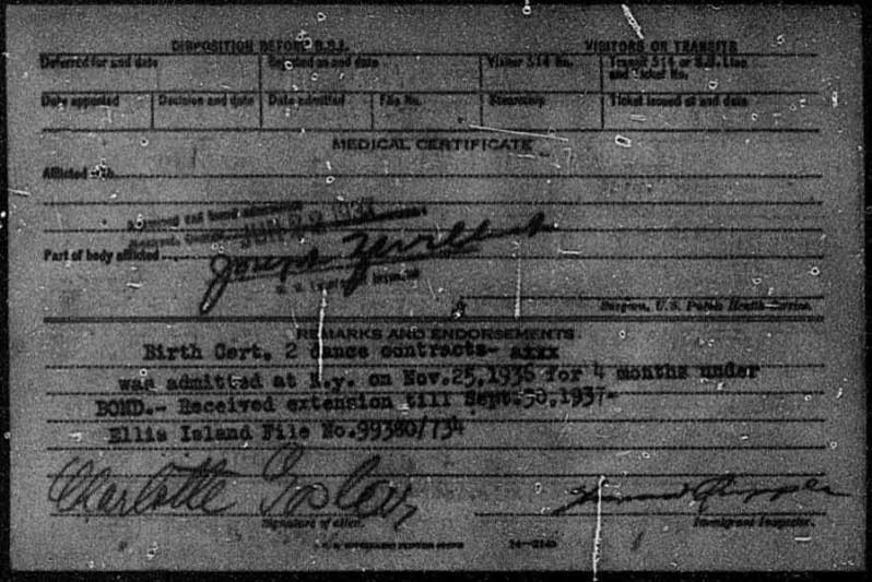 She emigrated to the USA via Canada on November 25, 1936, then in New York on June 30, 1937