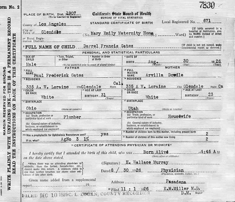 Date of birth : August 30, 1926, Highland Park, California (Profession Chief of the Los Angeles Police Department.