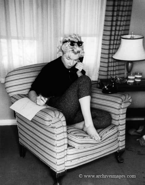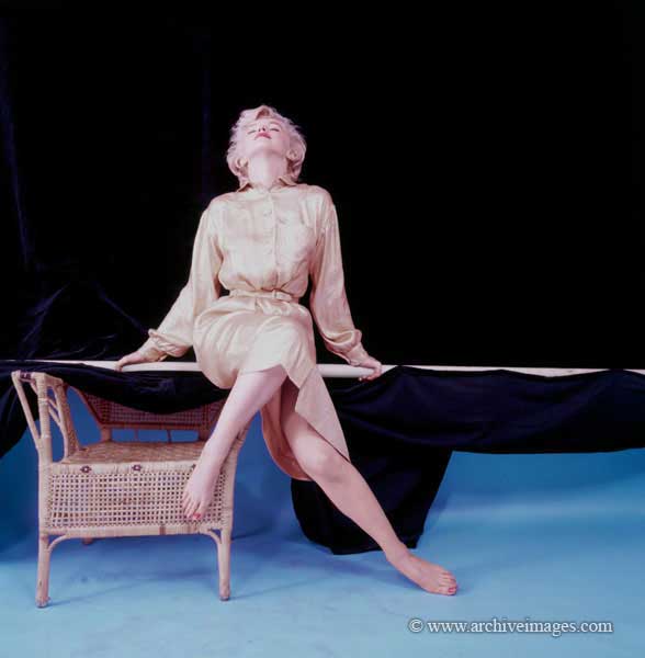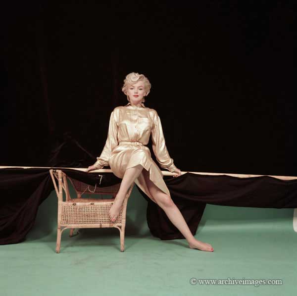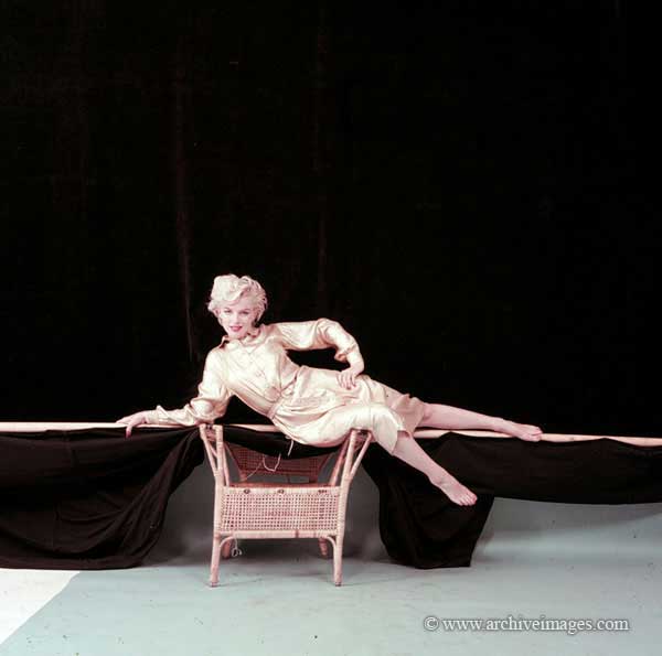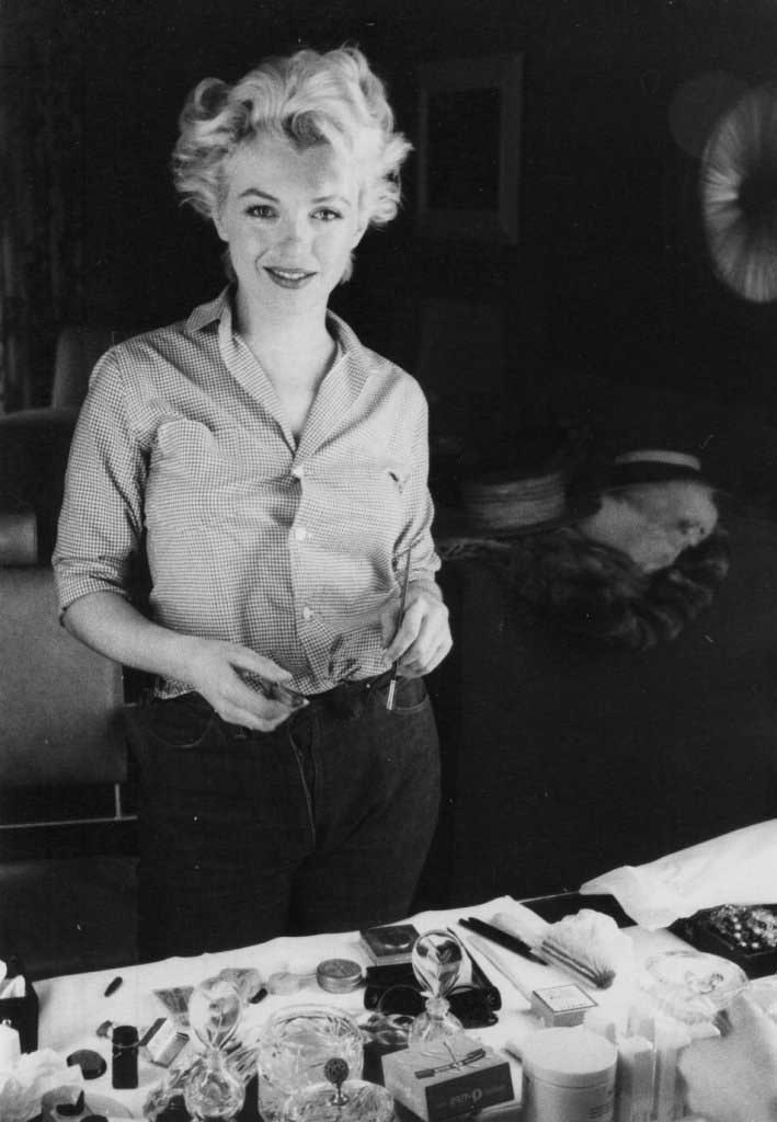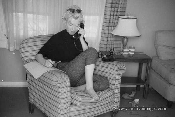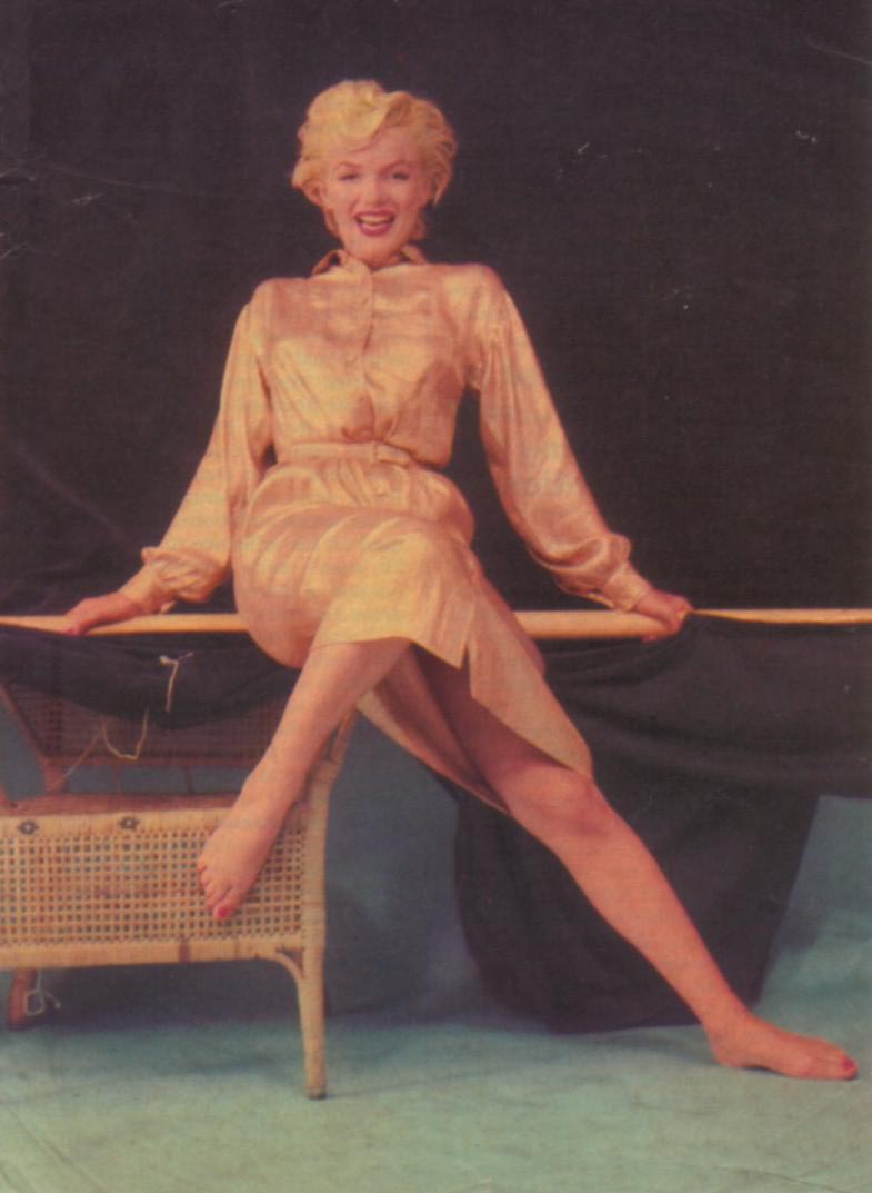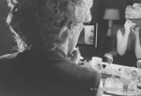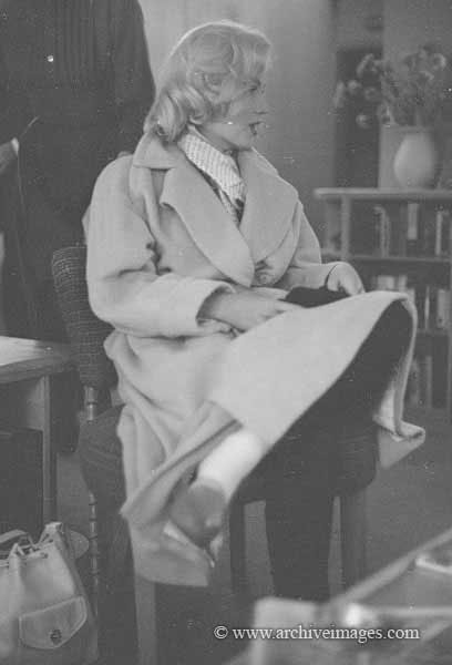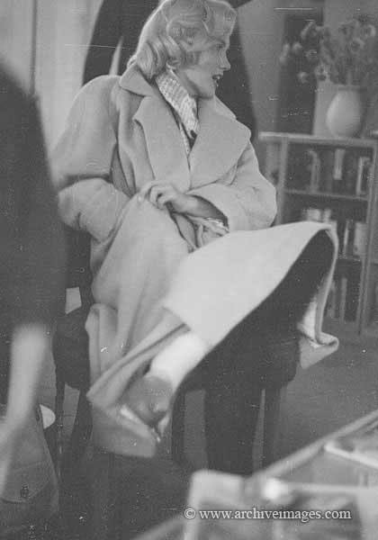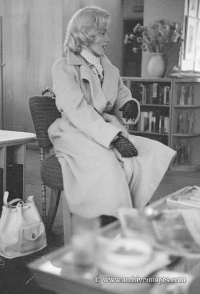 Marilyn wears a dress, too small for her, of Anna Klein, designer and Amy Greene's friend.