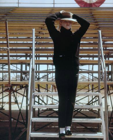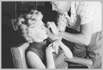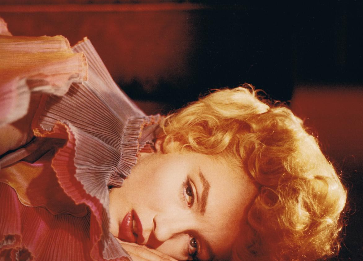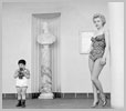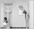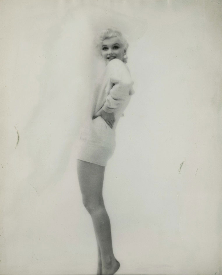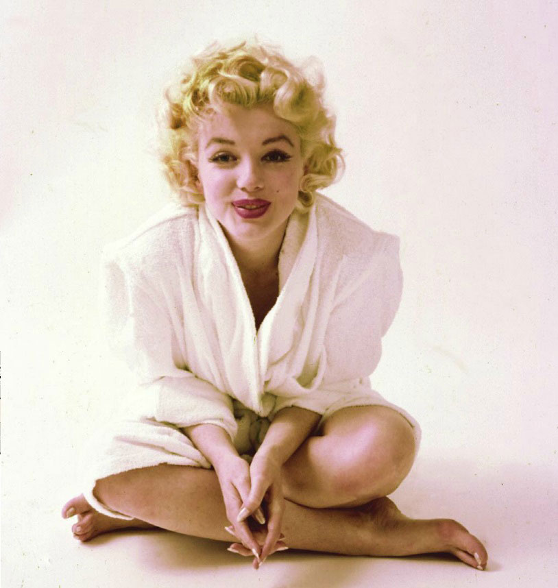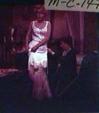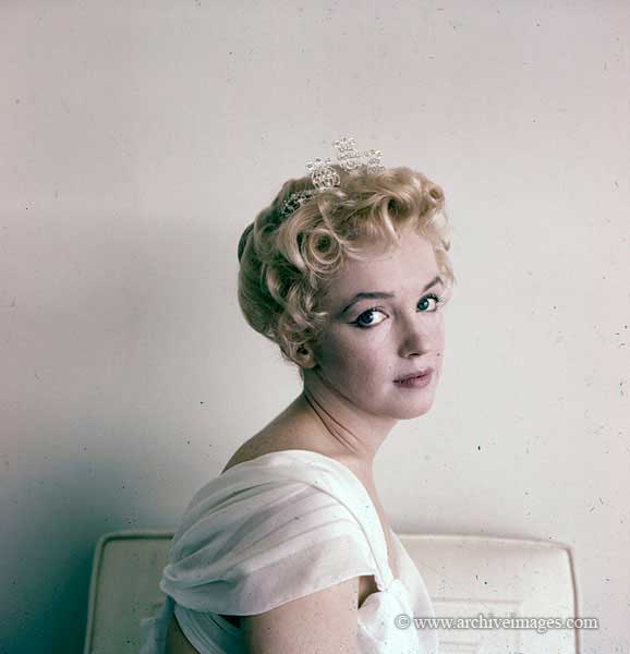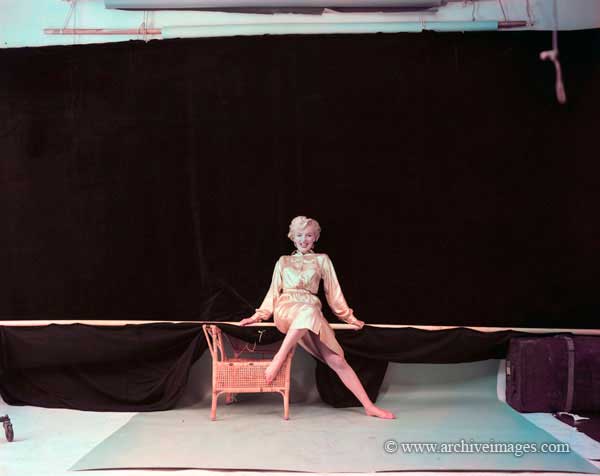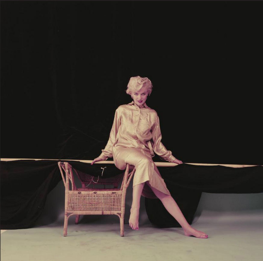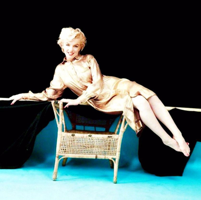 Marilyn wears a dress, too small for her, of Anna Klein, designer and Amy Greene's friend.
