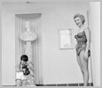 Strapped dress/mirror Milton's studio, January 28, 1955 (more pics here).