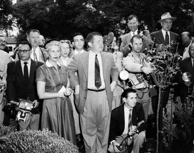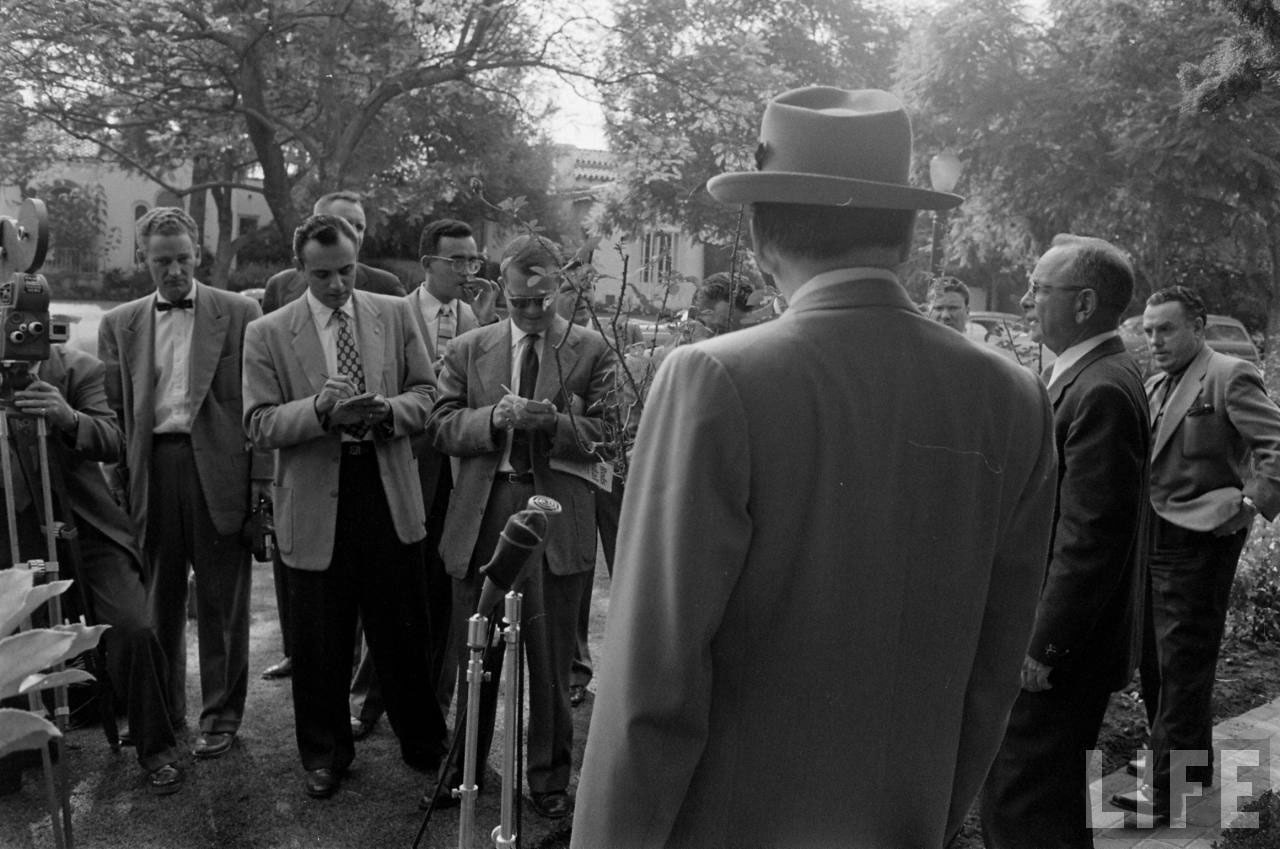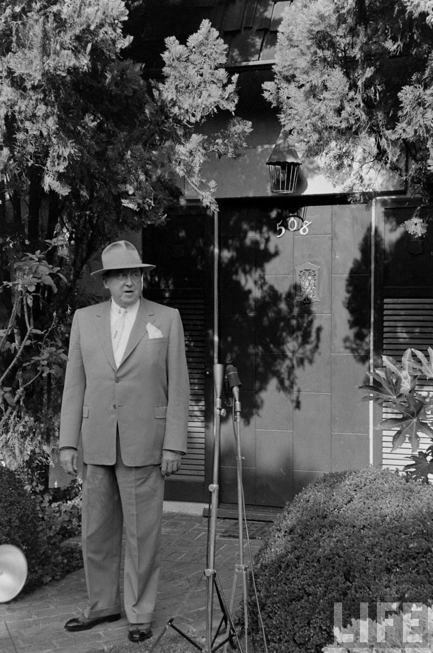 On October 6, 1954, in his statment to the press about the reasons of her client's divorce, he talked about a "career gap" and asserted that the divorce would be grantedfor the usual reasons of mental cruely.