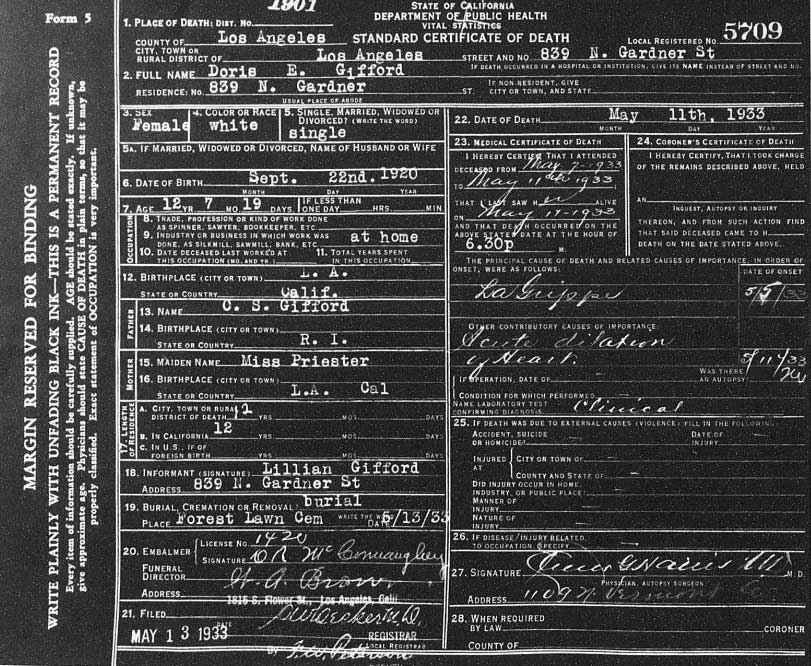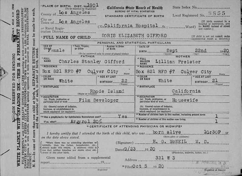 They had 2 children : Doris Elizabeth (September 22, 1920, Los Angeles-May 11, 1933, Los Angeles)