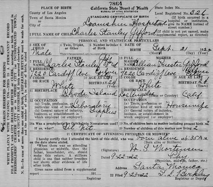 ) and Charles Stanley Junior (September 21, 1922, Los Angeles-April
