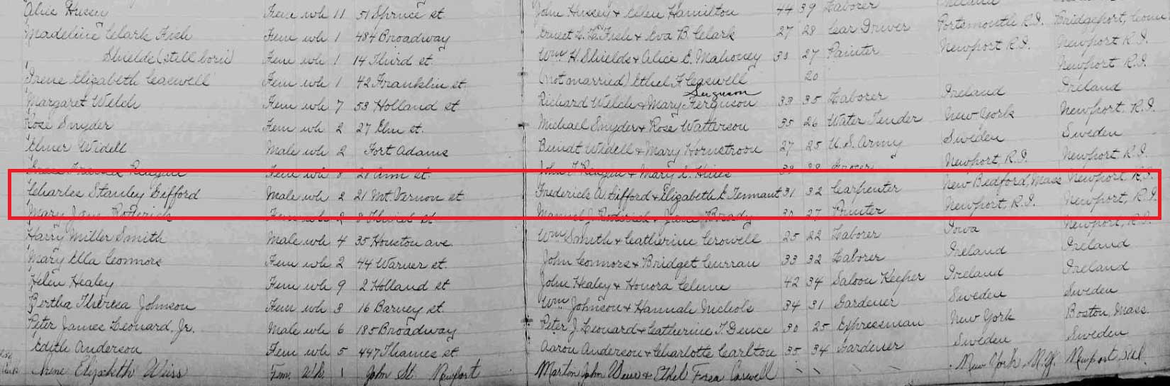 Riverside, California) and Elizabeth Easton "Lizzie" Tennant (April 5, 1866, Newport, Rhode Island-April 27, 1904, Newport, Rhode