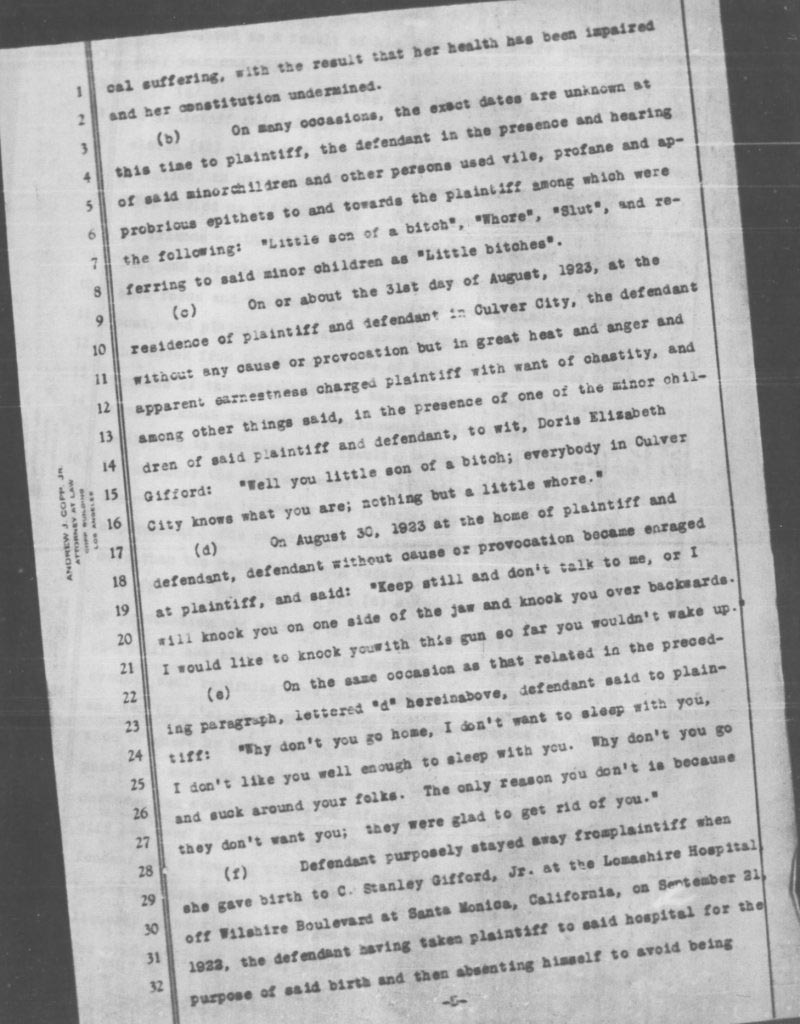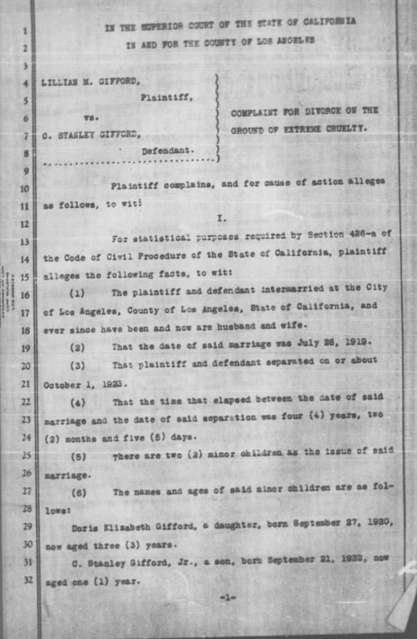 But Gladys didn't ever claim, in private or publicly, that Gifford was the father of the child. She didn't ask him the least support, neither material nor emotional, for her as for the child.