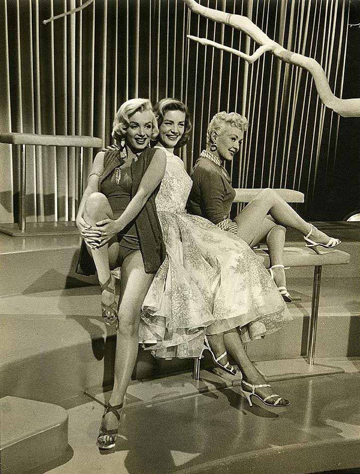 ses partenaires, Lauren Bacall et Betty Grable (,,).