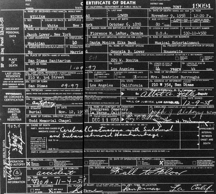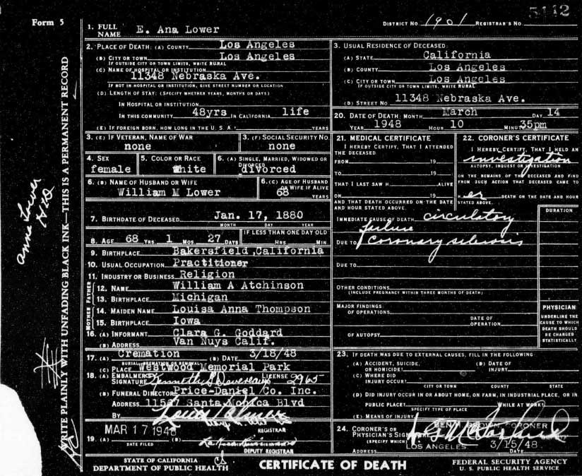 She married William Nicholas Lower (October 6, 1878, New York-November 9, 1958, Los Angeles)