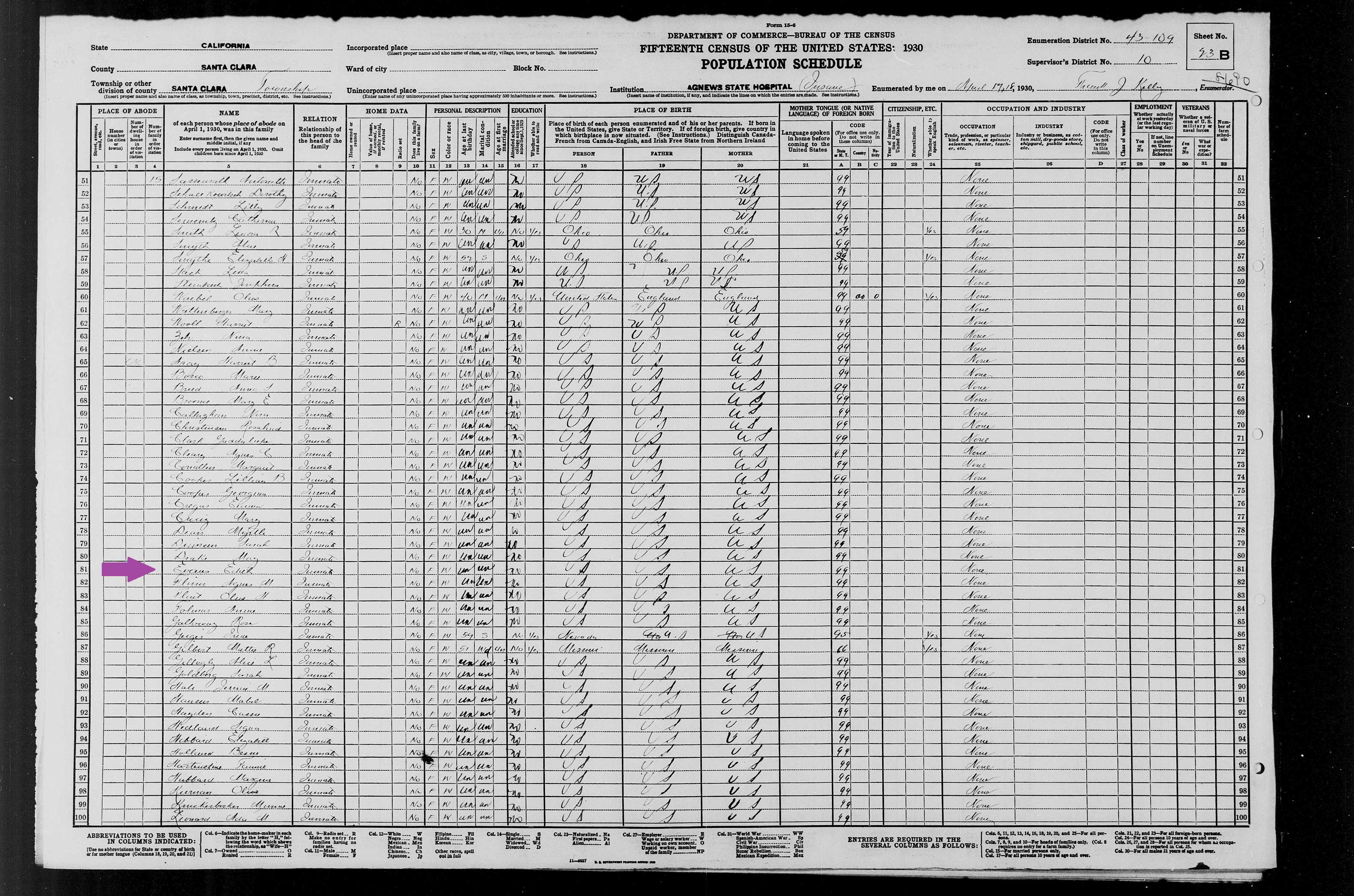A woman named Edith Evans, without any other information, appeared in the census 1930, hospitalized at the