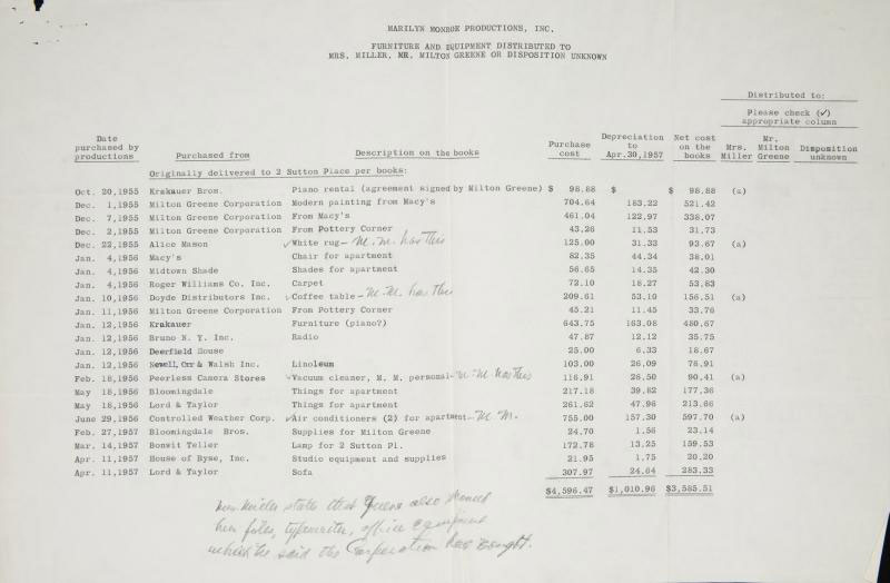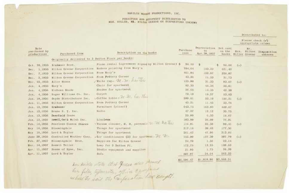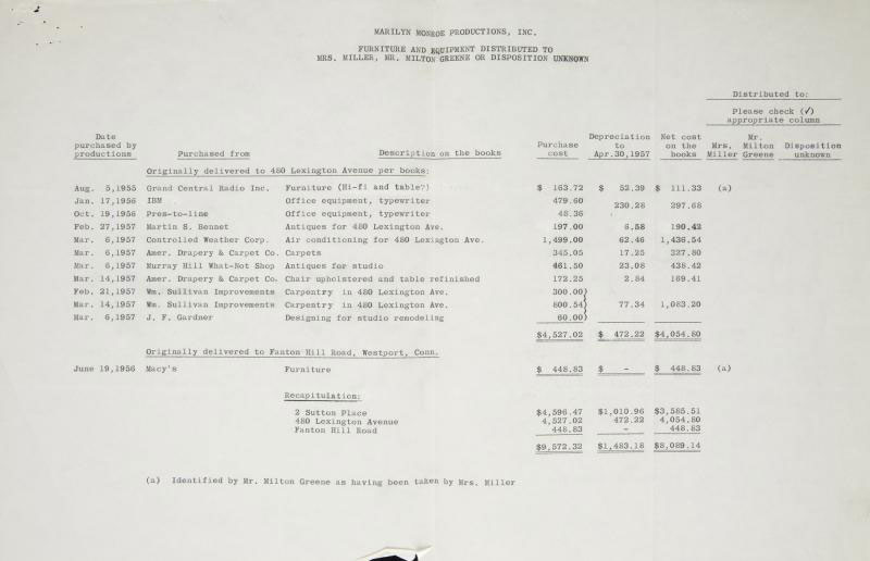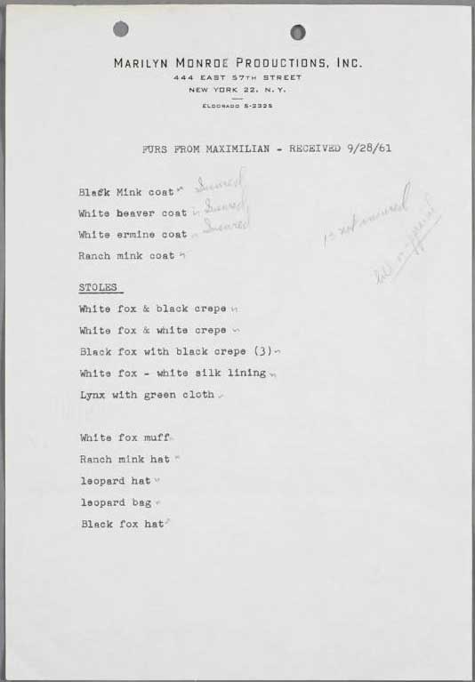 The office was located at Milton Greene photo studio, 480 Lexington Avenue, New York City, then, after Milton Greene's dismissal, at Marilyn's personal address, 444 East 57th Street.