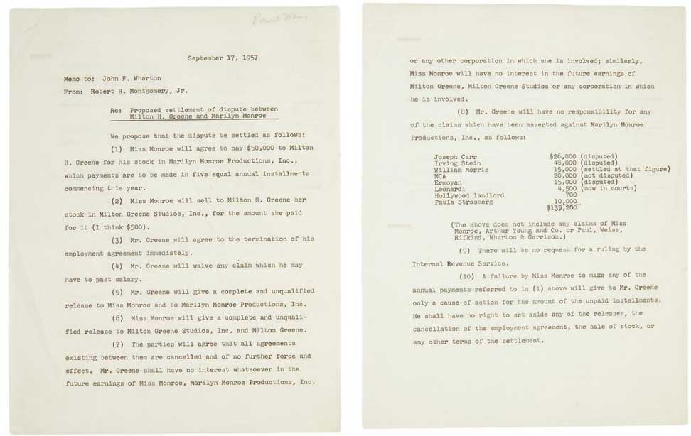 Marilyn was named presidente with 51% shares and Milton Greene vice président with 49% shares.