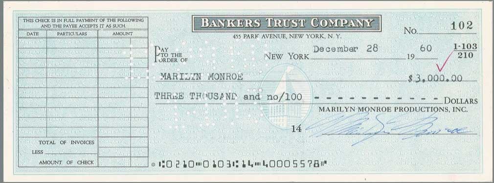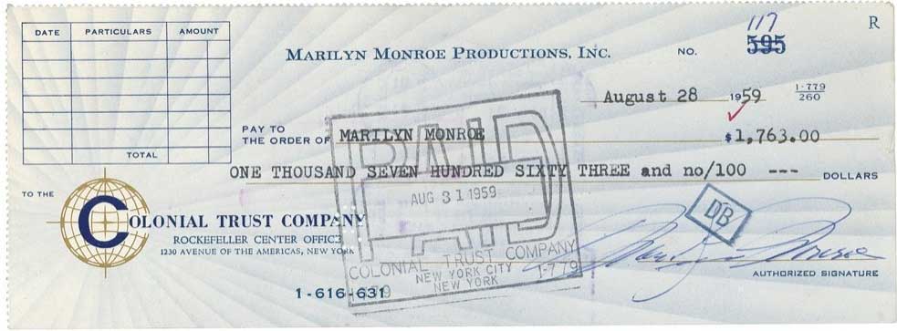 Contract dated April 1, 1959 between the Marilyn Monroe Productions (as the employer) and Marilyn Monroe (as