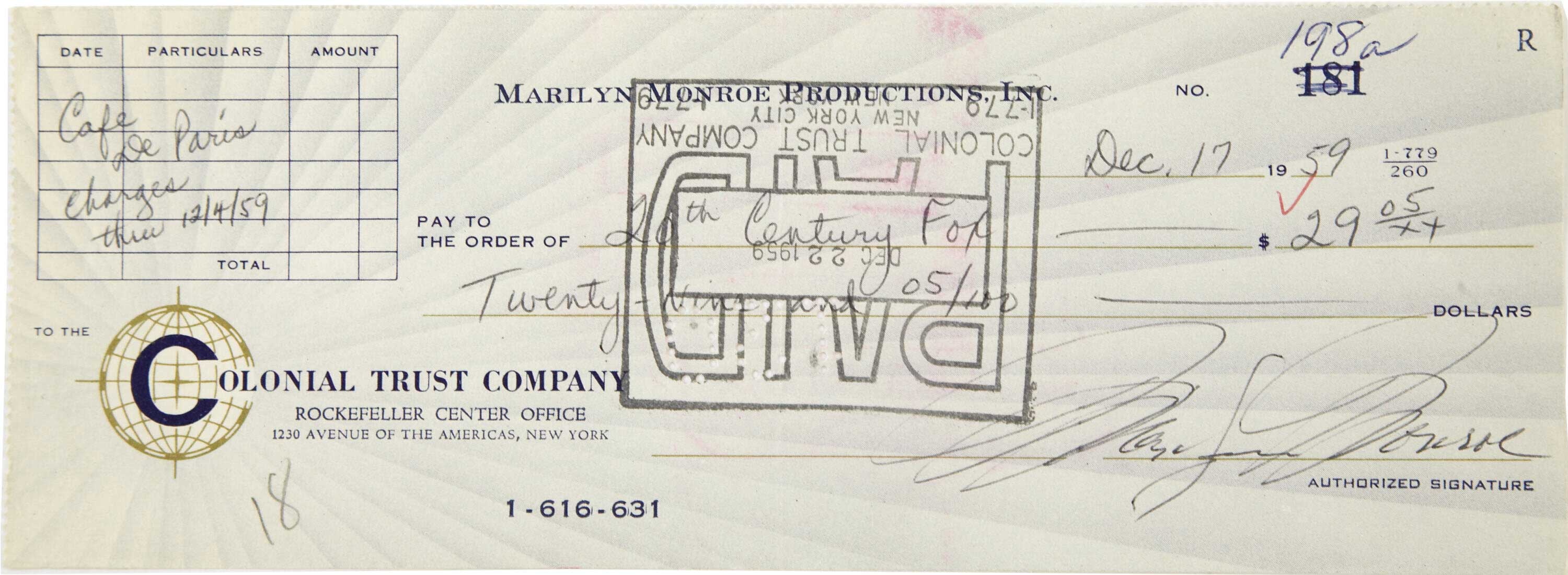 July 1, 1960 payable to the Cafe de Paris, at the Fox