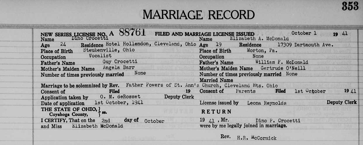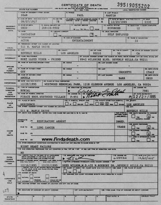 His parents were Gaetano Alfonso "Guy" Crocetti (December 15, 1894, Italy-August 20, 1967, California)