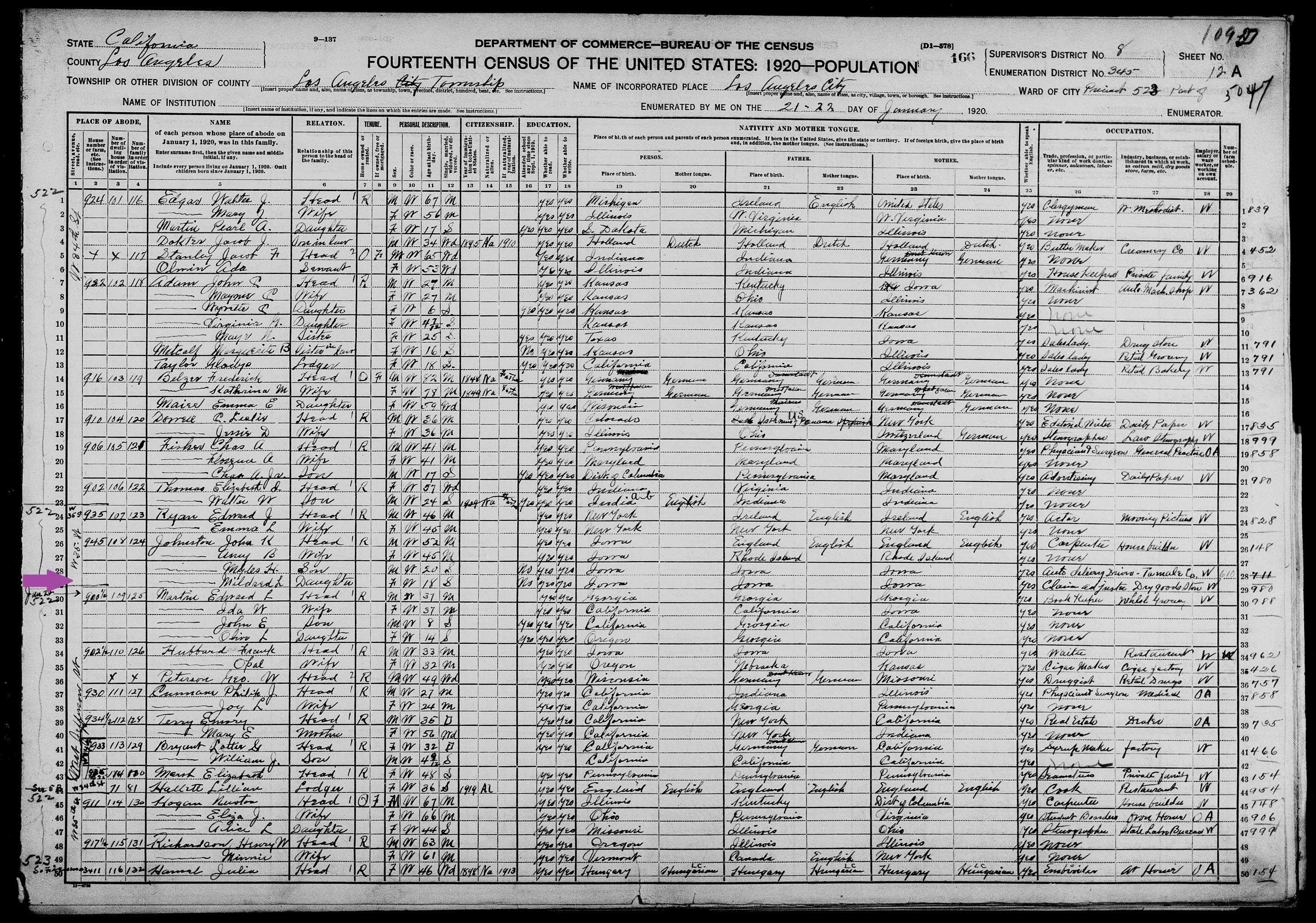 His parents were John William Henderson (December 6, 1853, Los Angeles-November 25, 1933, Los Angeles)Norma Jeane lived with her from November 1937 to August 1938, in Lankershim, north suburb of Los Angeles.