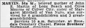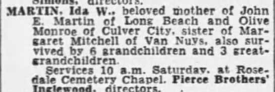 Grace McKee took her back in Los Angeles and placed her to her own aunt, Ana Lower.She married for her second wedding, Edward Lee Martin (December 4, 1885, Georgia-May 24, 1943, San Francisco).
