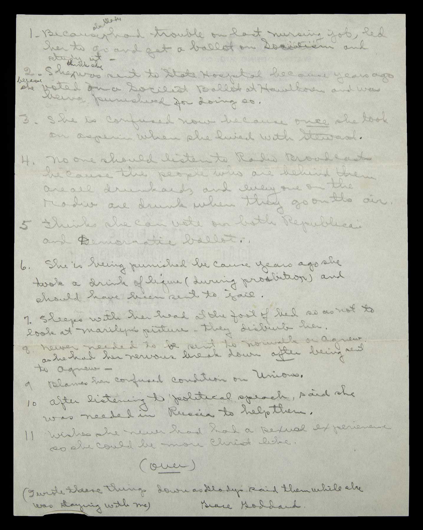 sister, with who she kept in touch. In her letter, Grace informed