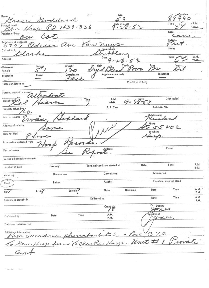 cancer, but Berniece would ask for Grace death certificate in 1979, and saw that the cause of death was a suicide by a barbiturate overdose.