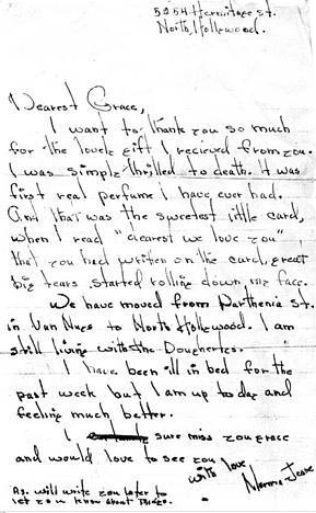 Letter dated August 25, 1953, Grace wrote to Marilyn who was shooting "River of No Return", because Gladys