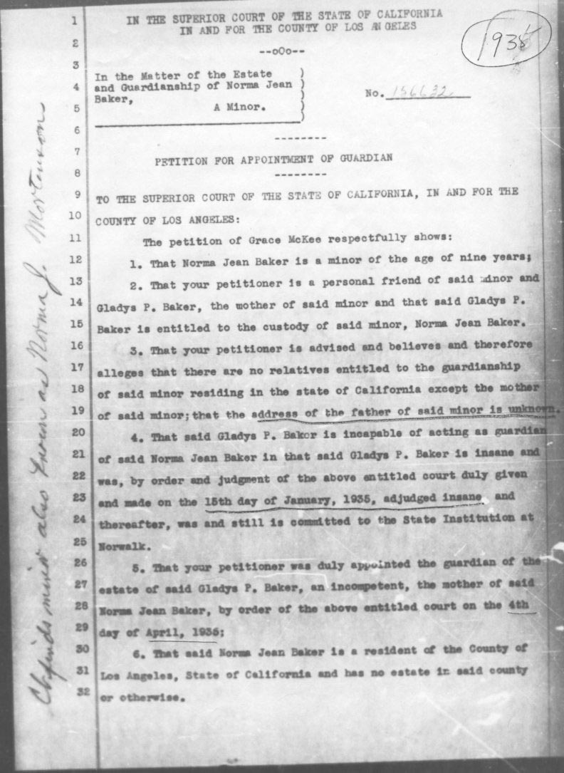On March 25, 1935, she stated under oath being the ideal candidate to become Norma Jeane's guardian.
