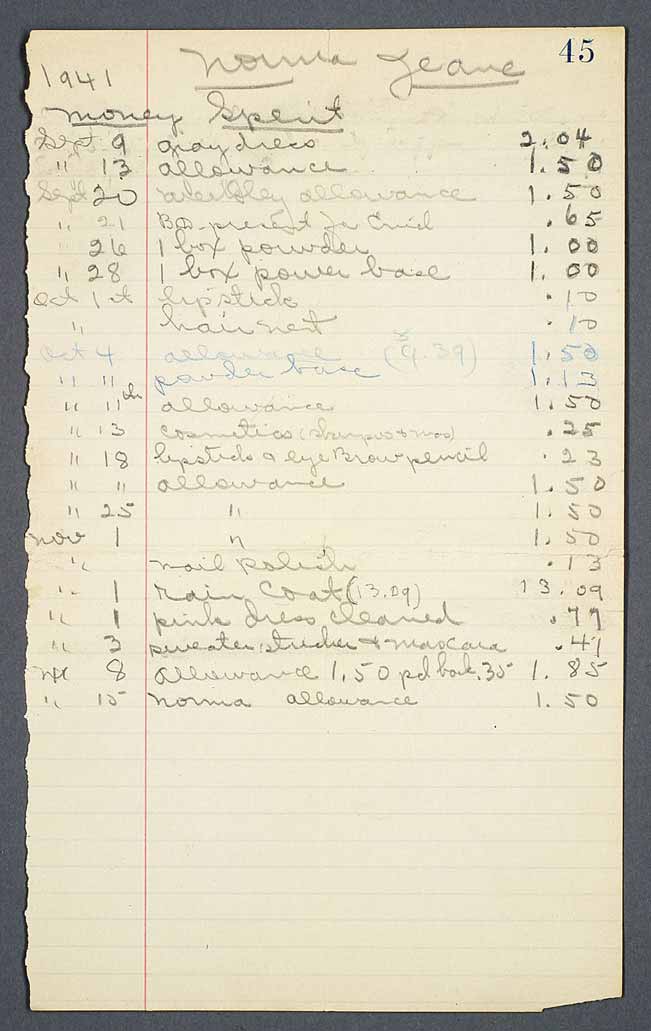 Expenses for Norma Jeane for .