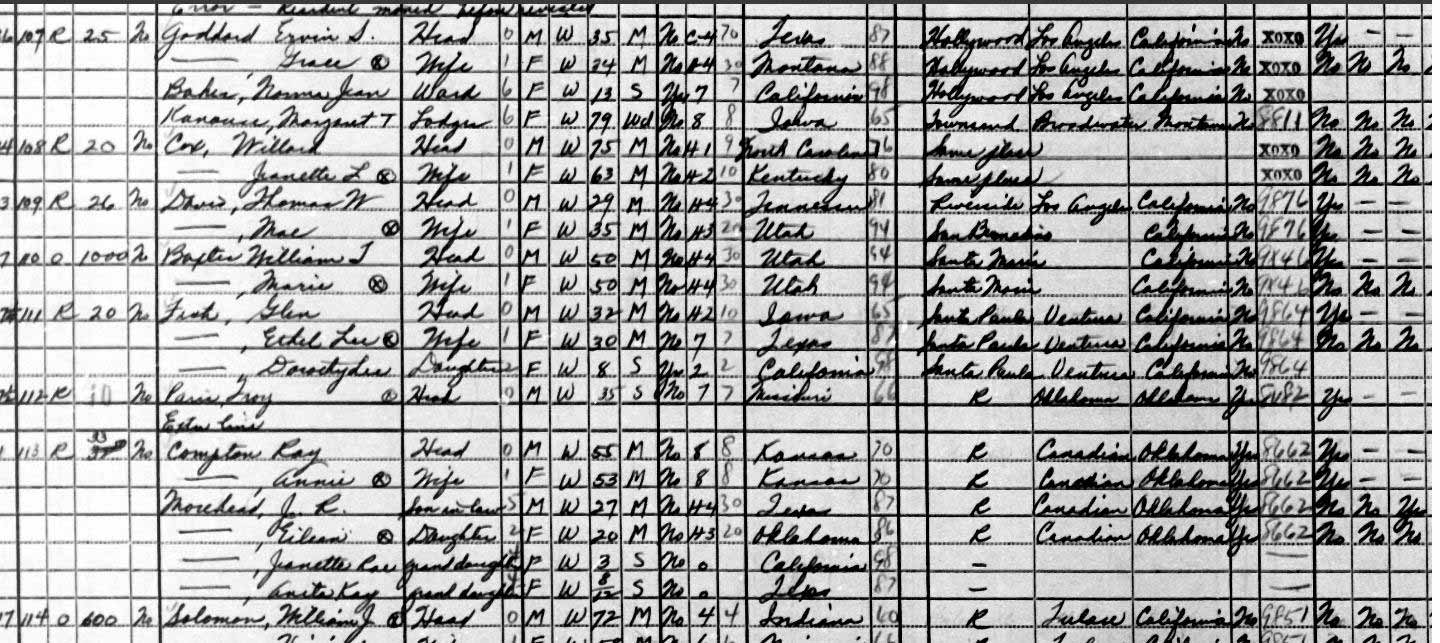 * 1929 : 6228 De Longpre Avenue, Los Angeles (with Gladys Baker)