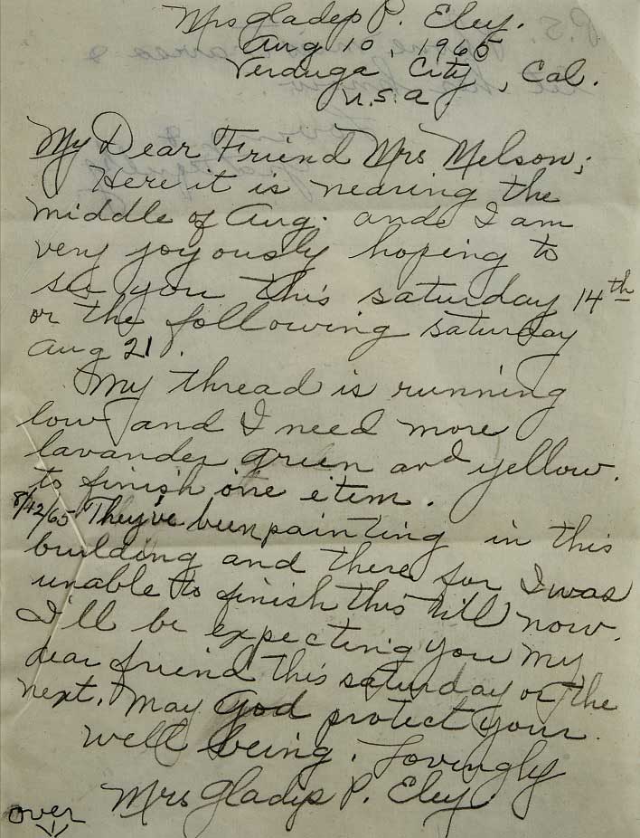 Gladys Baker sent her a thank-you letter on August 22, 1962 .