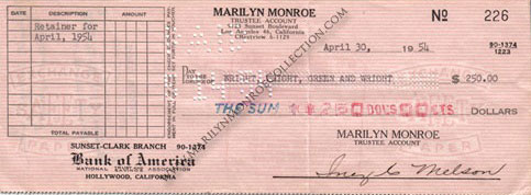 On April 30, 1953, check in the name of the Marilyn Monroe Trustee Account