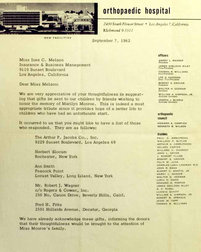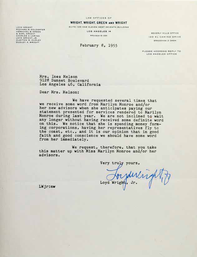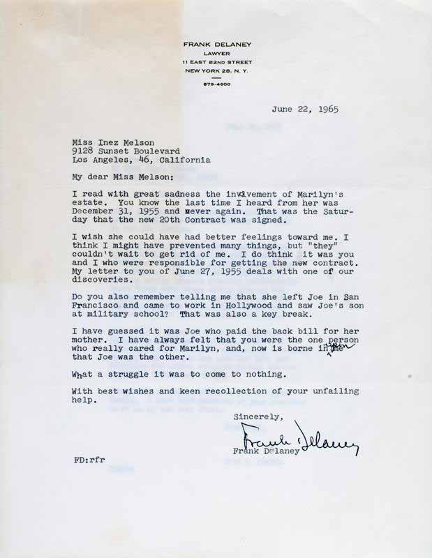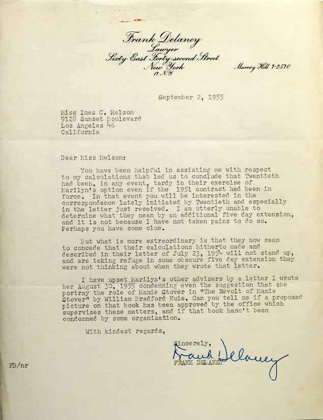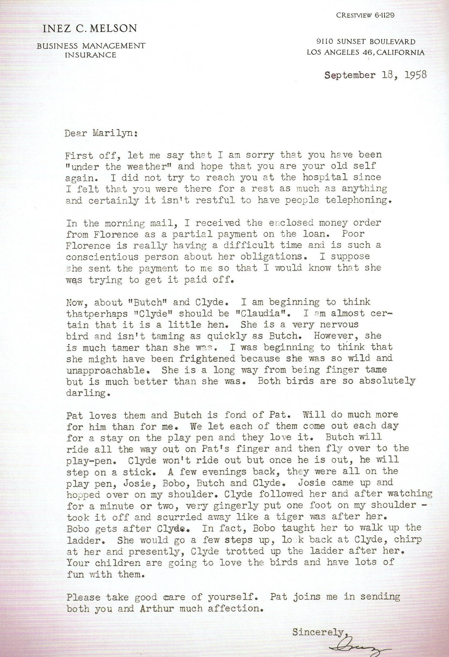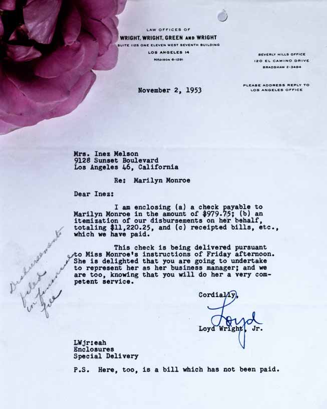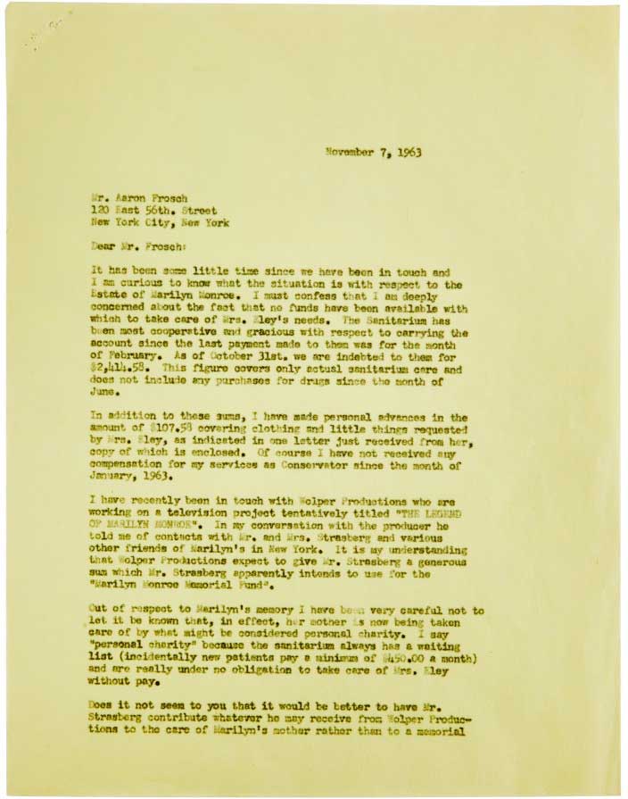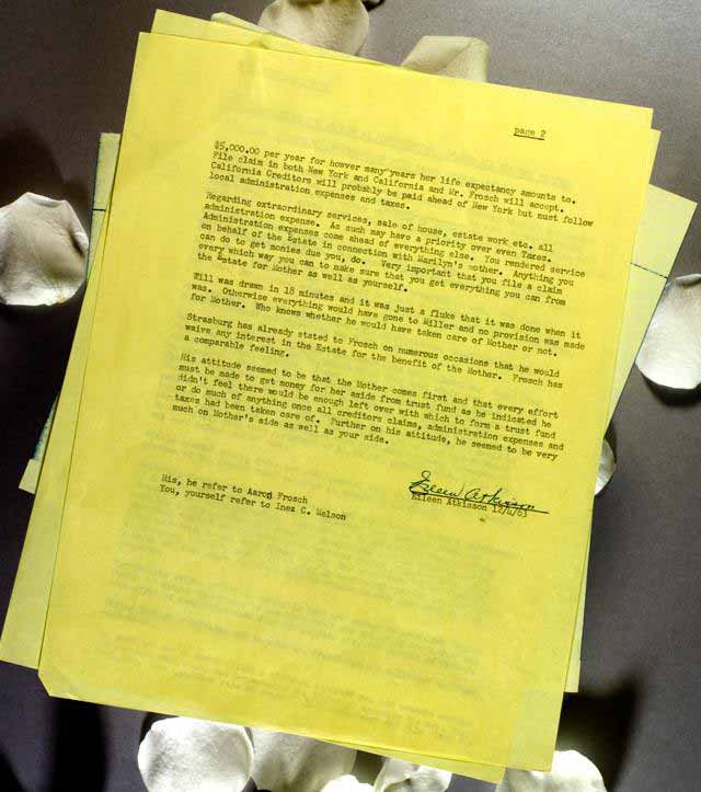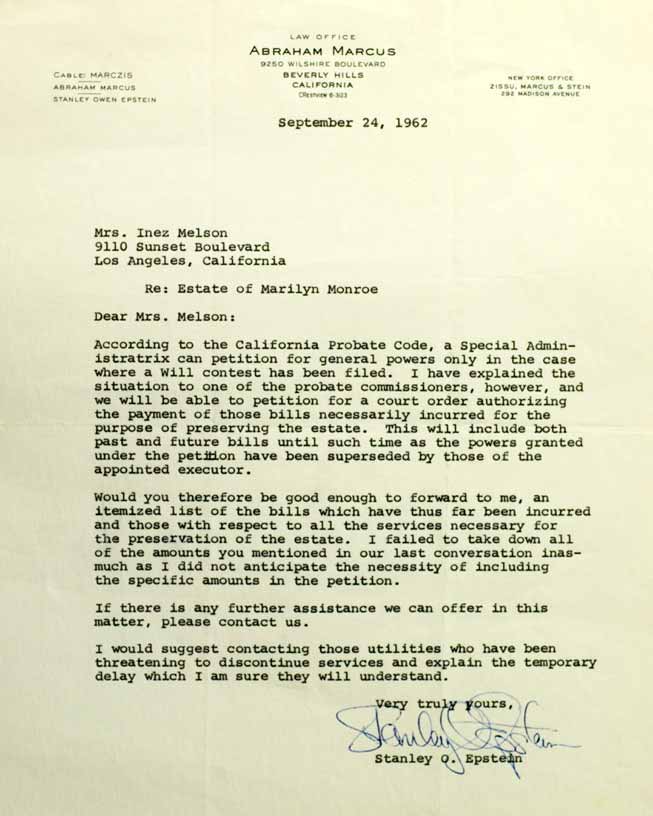 Letter about the Estate of Marilyn Monroe, dated September 24, 1962 .