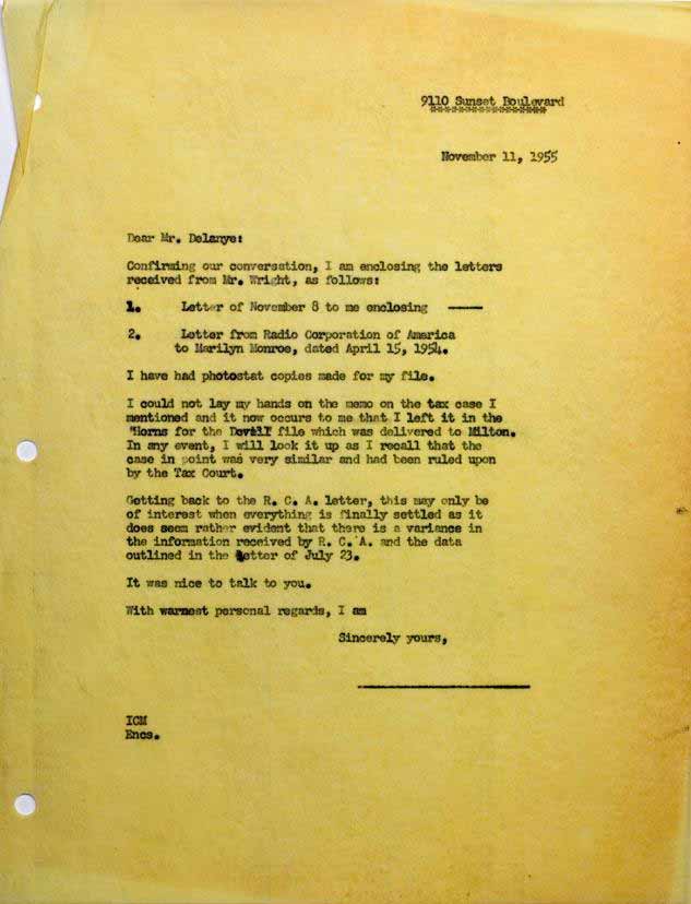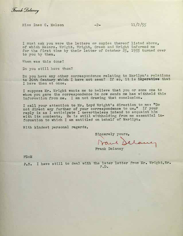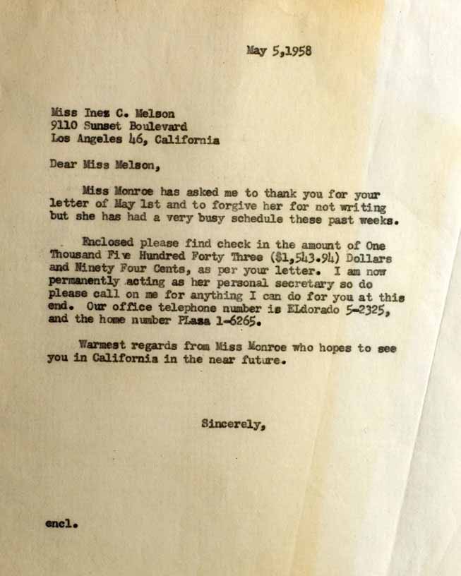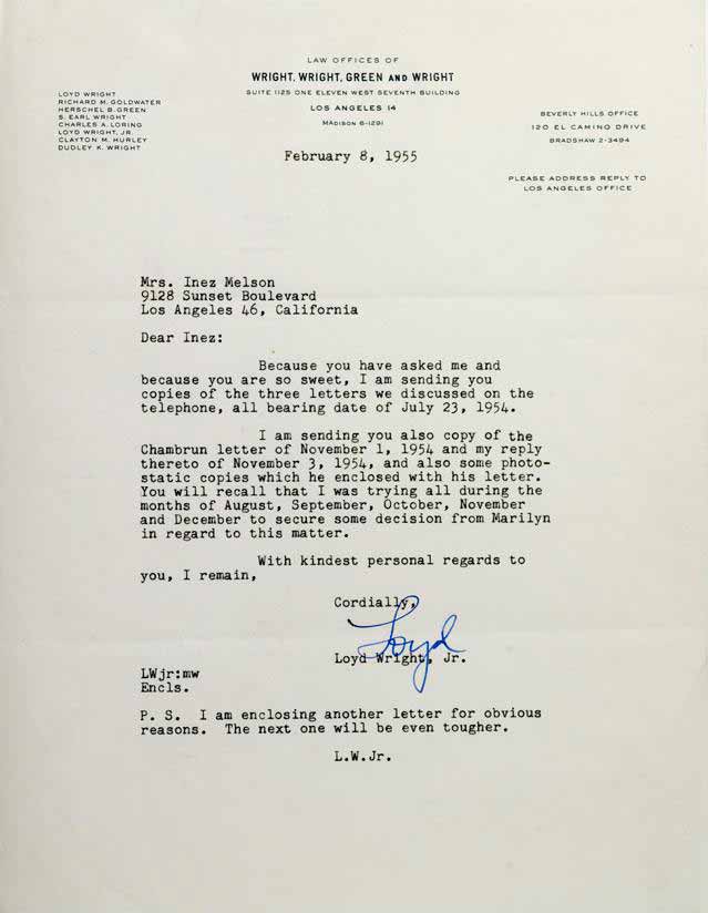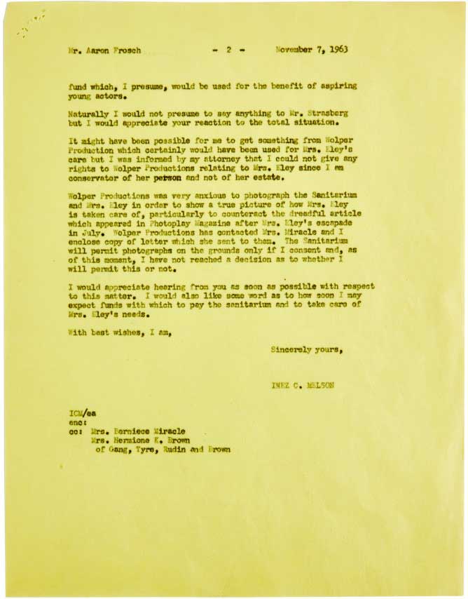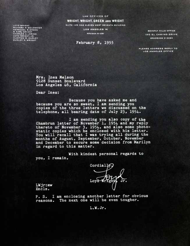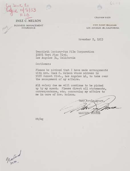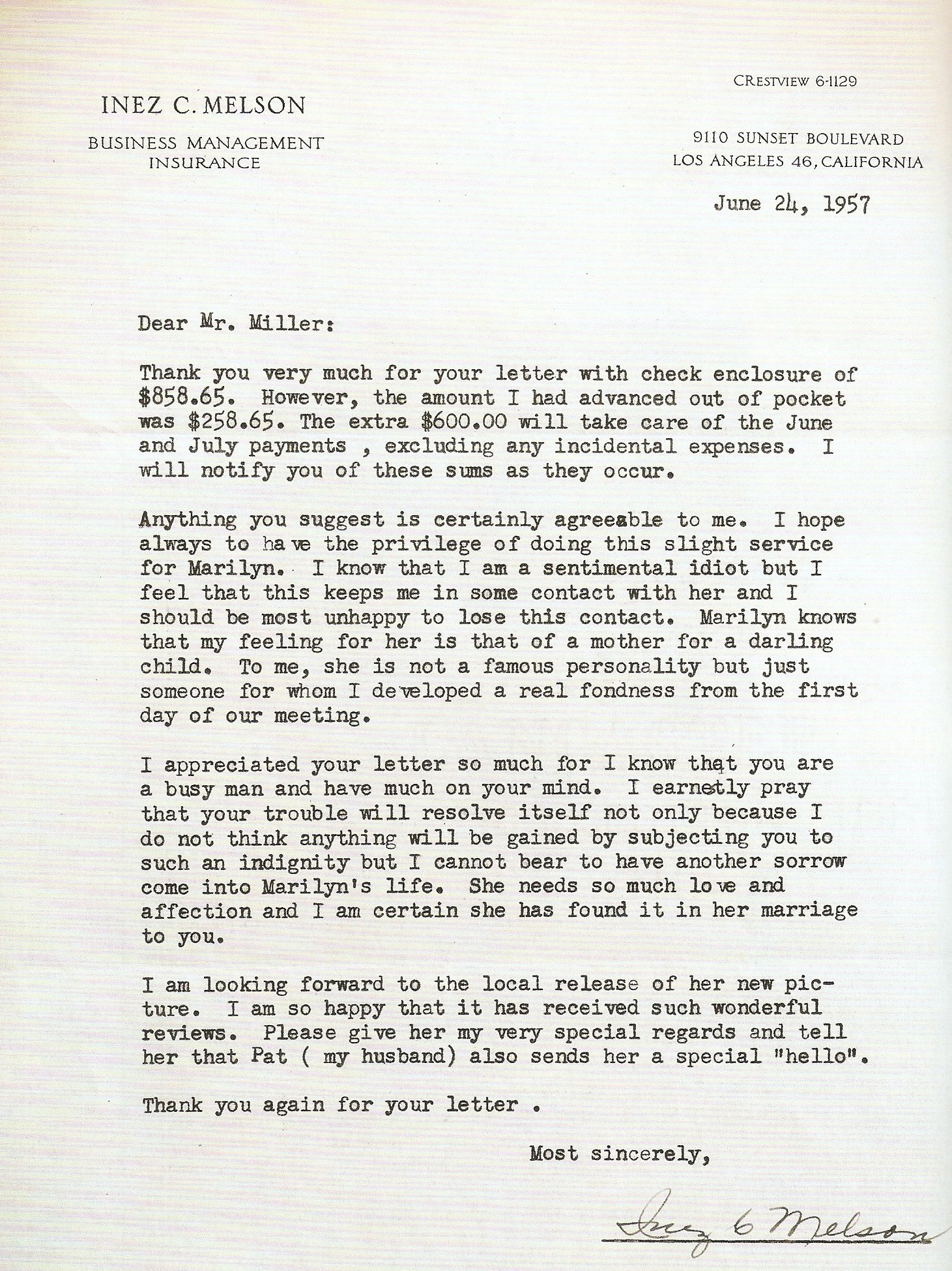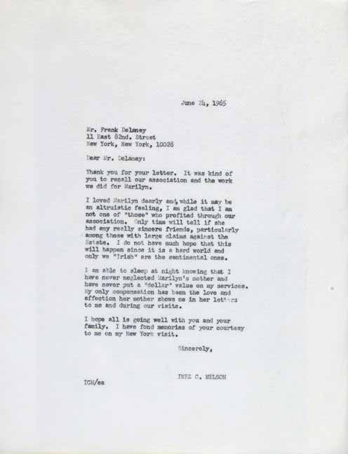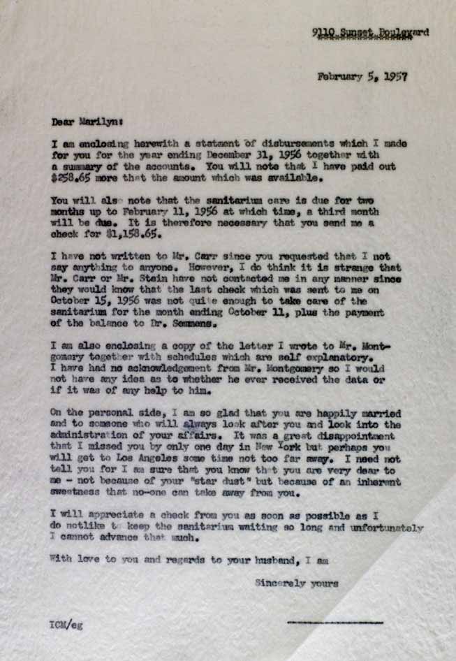 Letter about the Estate of Marilyn Monroe, dated September 24, 1962 .