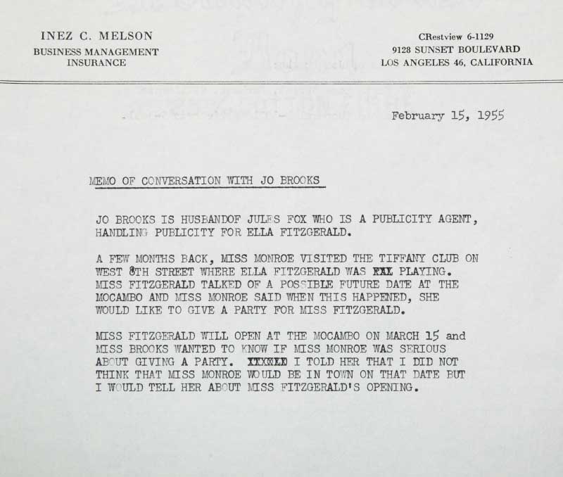 Memo dated February 15, 1955 with Ella Fitzgerald's publicist .