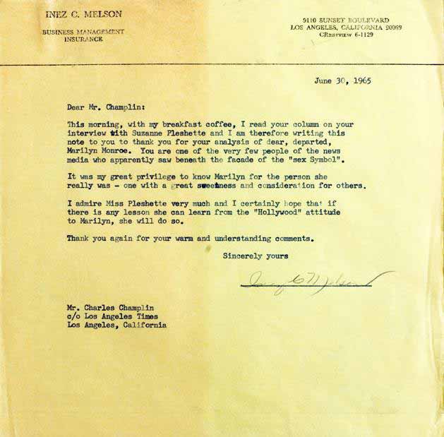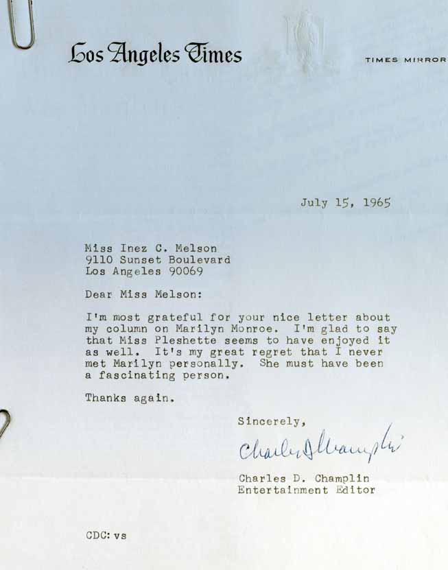 Letter to Charles Champlain of the Los Angeles Times, dated June 30, 1965 .
