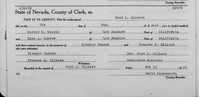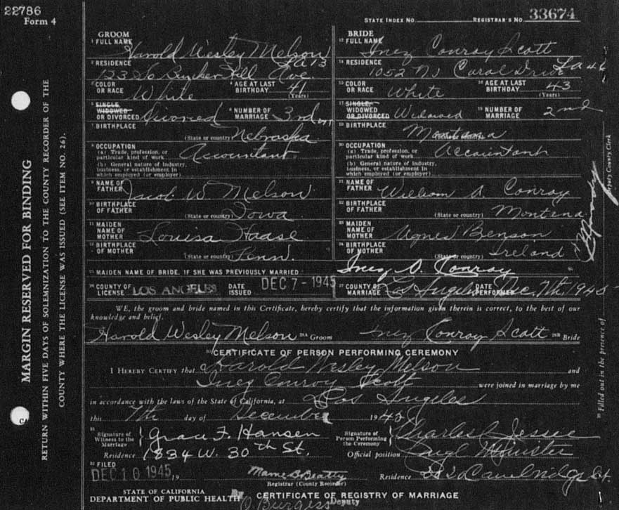 On February 10, 1942 she married Harold Wesley "Pat" Melson (November 12,1904, Nebraska-September 21,